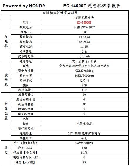 本田汽油發電機 EC14000T 10KW三相+電啟動