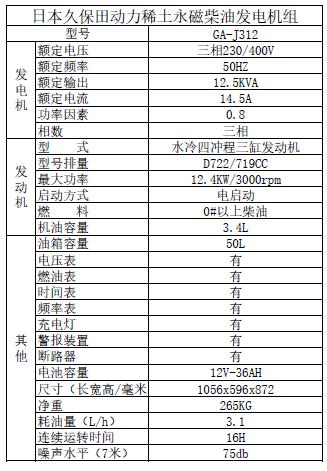 久保田柴油發電機 10KW三相 J312
