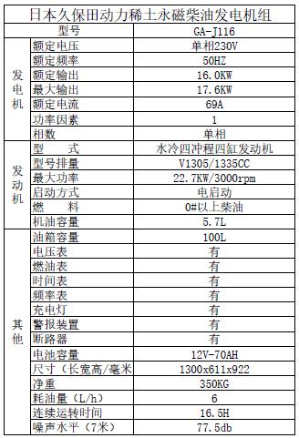 久保田柴油發電機 16KW單相 J116