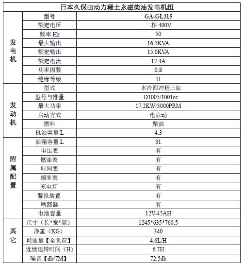 久保田柴油發電機 12KW三相 GL315