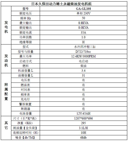 久保田柴油發(fā)電機(jī) 8KW單相 GL108