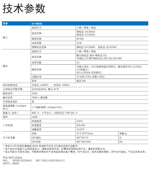 產(chǎn)品特性 功率范圍: 20/30/40/60/80/100/120/160/200kVA 拓?fù)浼夹g(shù): • 在線雙轉(zhuǎn)換技術(shù) • 高頻IGBT整流 • 塔式設(shè)計(jì) 輸入輸出: 220V/380V 4線 頻率: 50/60 Hz 產(chǎn)品特點(diǎn) • 高達(dá)0.9輸出功因,較符合當(dāng)代IT設(shè)備需求,適應(yīng)性更廣; • 雙/單輸入可選,滿(mǎn)足不同用戶(hù)需求,靈活性更高; • 電池節(jié)數(shù)連續(xù)可調(diào),可靈活配置; • 94%雙轉(zhuǎn)換模式效率; • 98%節(jié)能模式效率,提升了電能轉(zhuǎn)化效率,降低了運(yùn)營(yíng)成本; • 占地面積小,可高達(dá)44%空間節(jié)省; • 便捷安裝,節(jié)省您的安裝成本; • 標(biāo)配防塵網(wǎng),滿(mǎn)足更多應(yīng)用場(chǎng)景; • PCBA三防技術(shù),提升系統(tǒng)可靠性; • N+X冗余并機(jī)技術(shù),提升電力系統(tǒng)可靠性; • 采用高可靠性關(guān)鍵元器件選型設(shè)計(jì); • Winpower監(jiān)控,可通過(guò)網(wǎng)頁(yè)、APP監(jiān)控、管理您的電力運(yùn)行; • 全前方維護(hù),節(jié)省服務(wù)空間; • 適用環(huán)境 中、小型數(shù)據(jù)中心,計(jì)算機(jī)數(shù)據(jù)機(jī)房,通訊基站,自動(dòng)化控制系統(tǒng),安保系統(tǒng),廣播電視系統(tǒng),工廠生產(chǎn)過(guò)程控制, 石油化工;