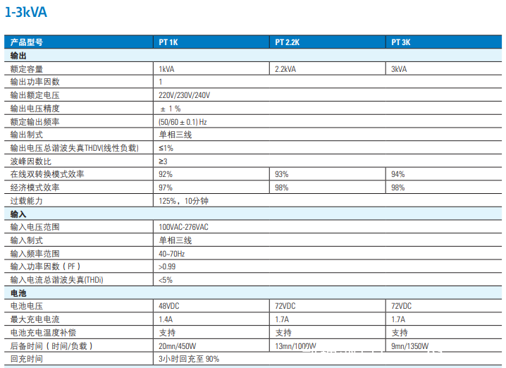 • 更低能耗,滿足新一代機房趨勢,3K/10K/20K效率分別達94%/95%/96%;